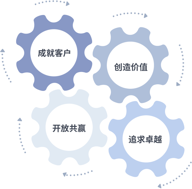 成就客户是一切决策的出发点,创造价值是衡量所有工作的标准,追求卓越是PG模拟器做事做人的态度,开放共赢是PG模拟器的格局也是最终的结果。价值观的齿轮环环相扣,推动着组织里的每个人不断向前。